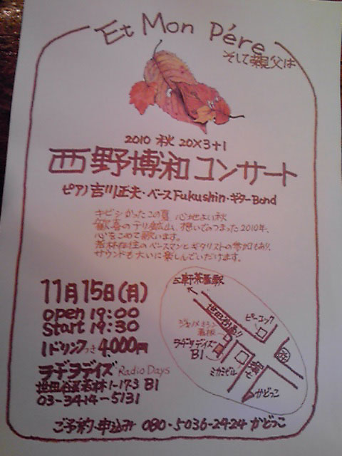 世田谷区若林にある居酒屋「かどっこ」のマスターでもある、シャンソン歌手『西野博和』によるブログです。