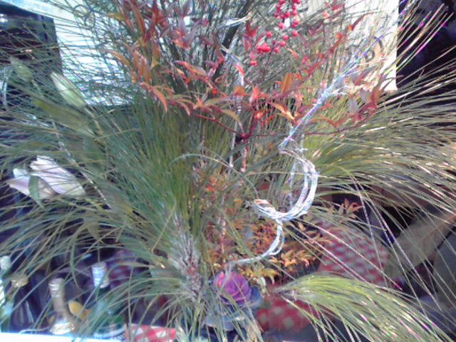 五洋松と葉牡丹と難を転じると言われる南天をあしらいました。是非見に来て下さい。